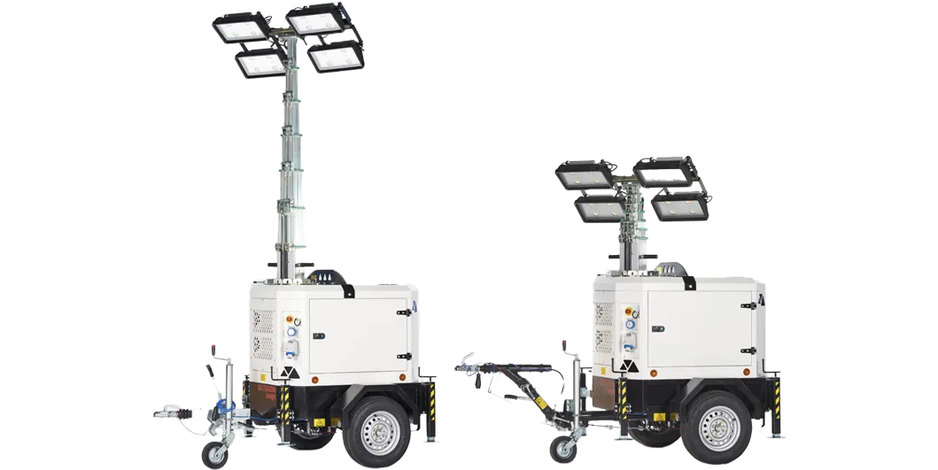 Praca po zmroku wymaga solidnego, mobilnego masztu oświetleniowego, który spełni oczekiwania najbardziej wymagających Klientów. Oferujemy maszty oświetleniowe zasilane silnikiem wysokoprężnym, które korzystają z najnowszych technologii LED i które są najbardziej energooszczędne na rynku. Dodatkowo urządzenie posiada możliwość zasilania masztu oświetleniowego z sieci energetycznej bez konieczności uruchamiania silnika.